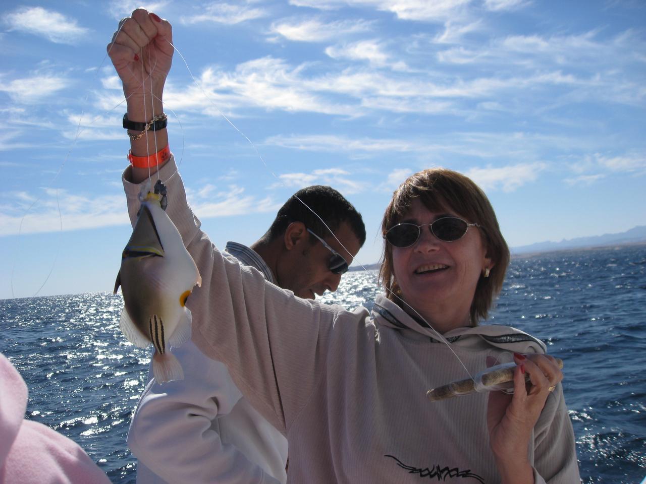 одна рыбка поймалась на два крючка