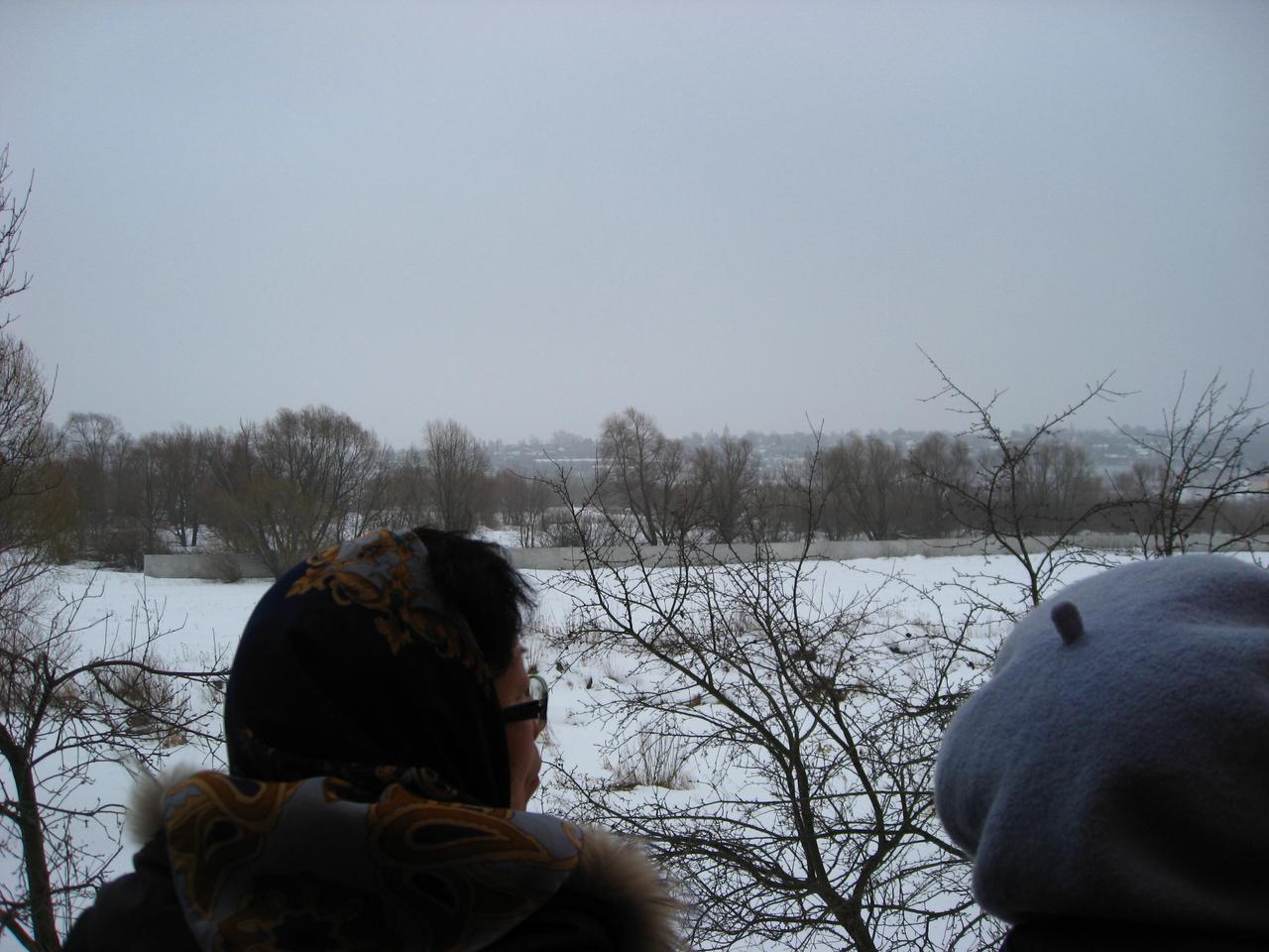 Матушка показывает нам вид на Каширу из монастыря