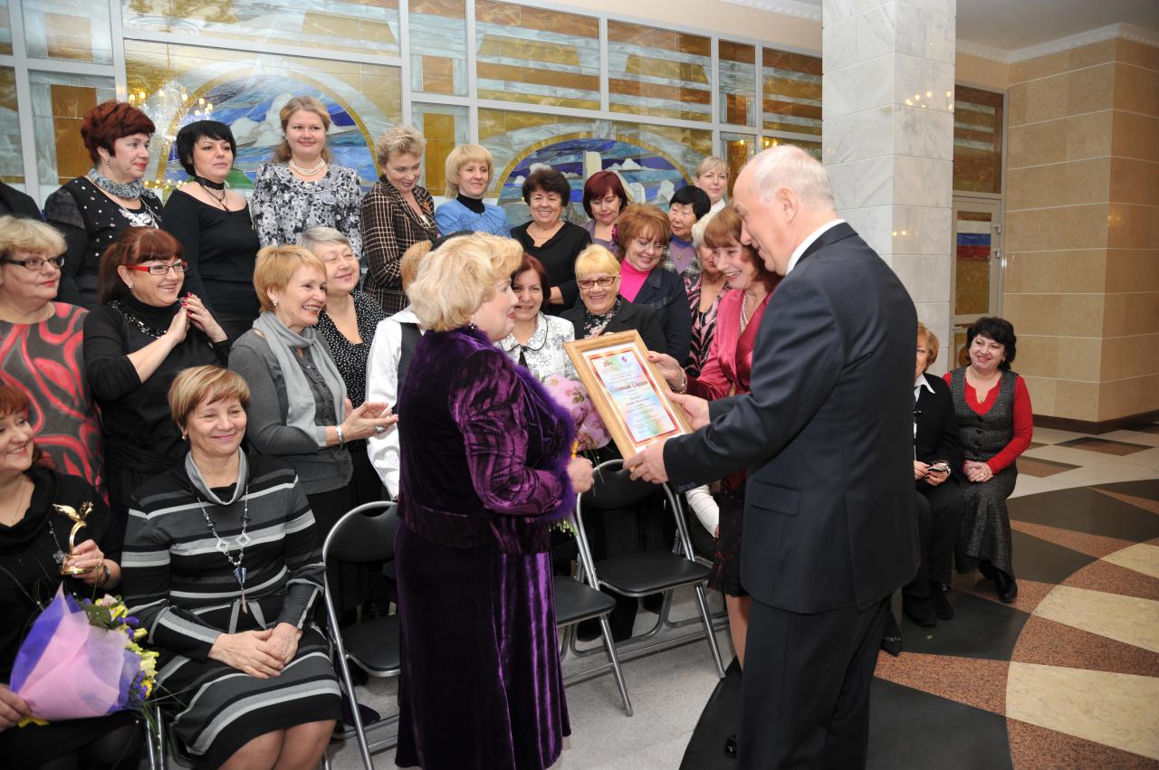 Мэр города Хабаровска и президент организации \«Деловые женщины России\» Костина Наталия награждают победителей конкурса \«Успех\» 2011